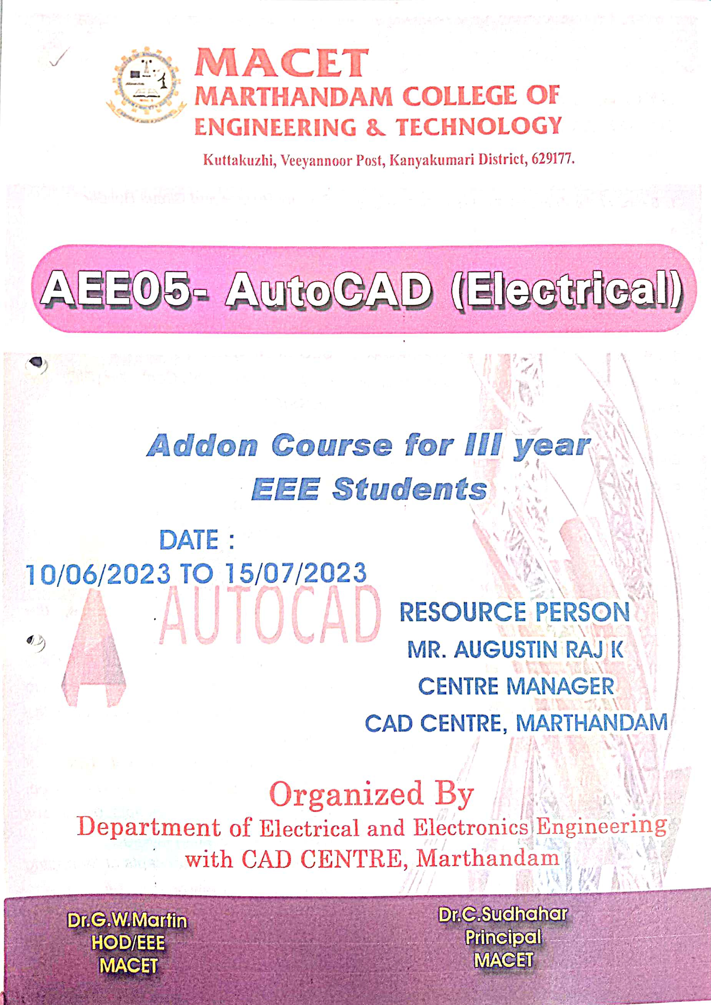 Course Code & Course Name : AEE04 Electrical AUTOCAD