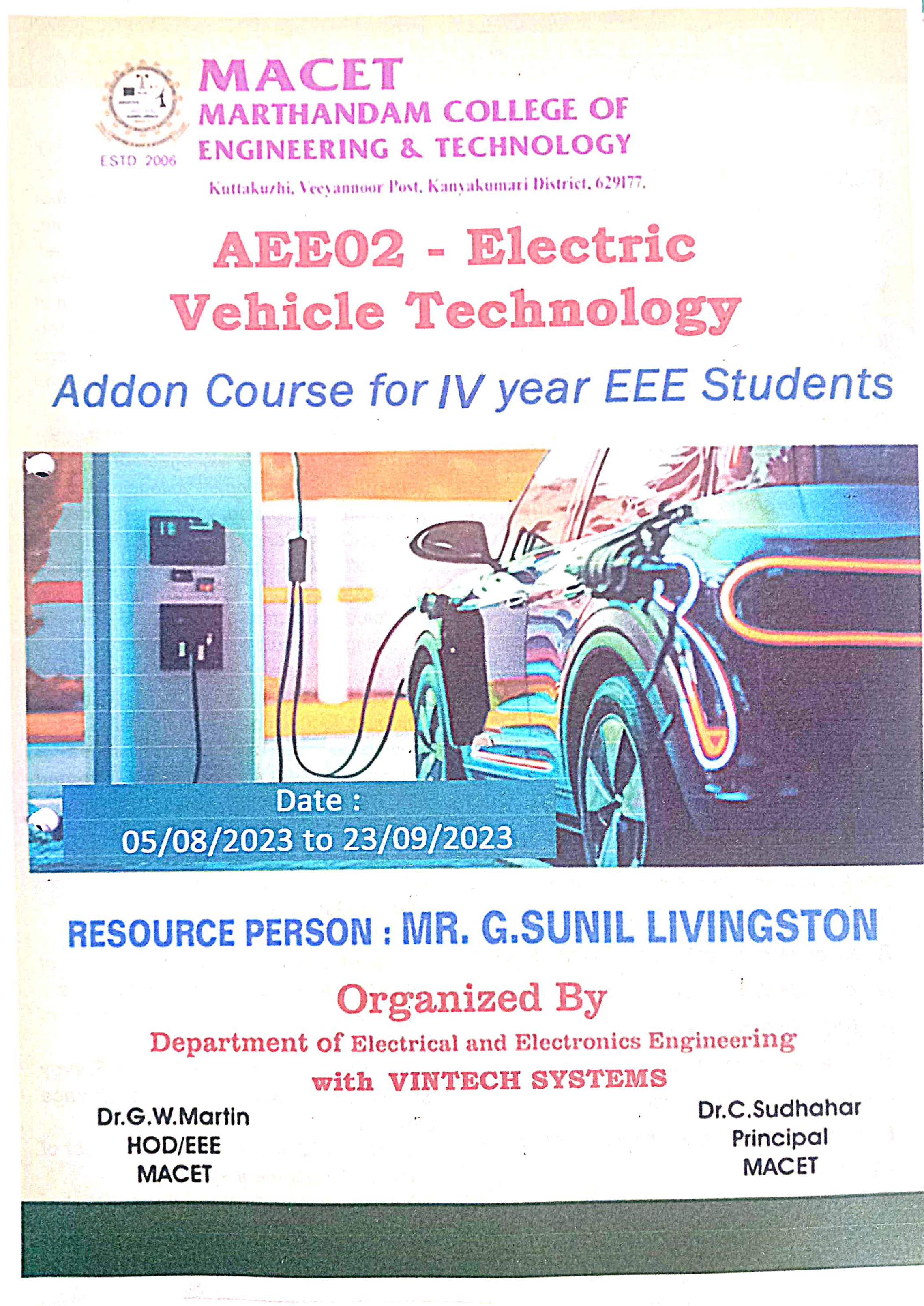 Course Code & Course Name : AEE02 Electrical Vehicle Technology