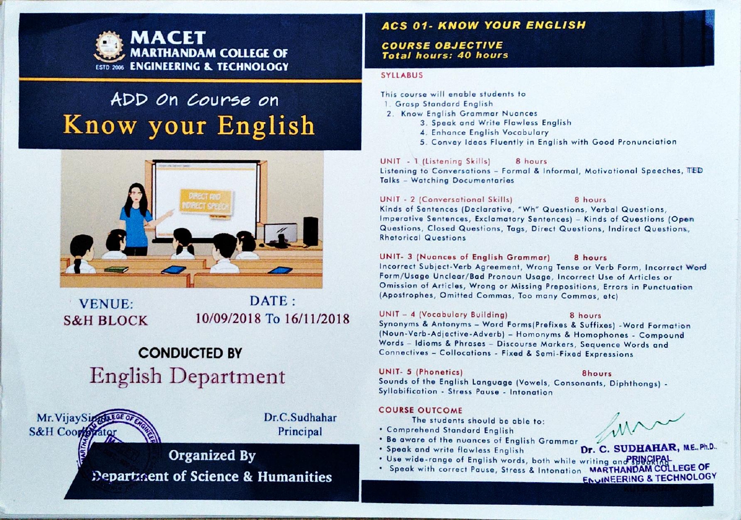 VALUE ADDED COURSES FOR THE ACADEMIC YEAR 2018-2019