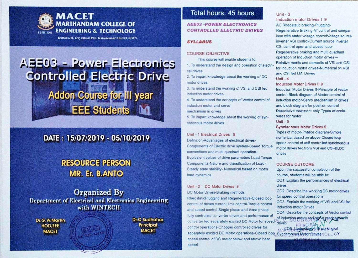 Course Code & Course Name : AEE03Power Electronics controlled Electric Drives