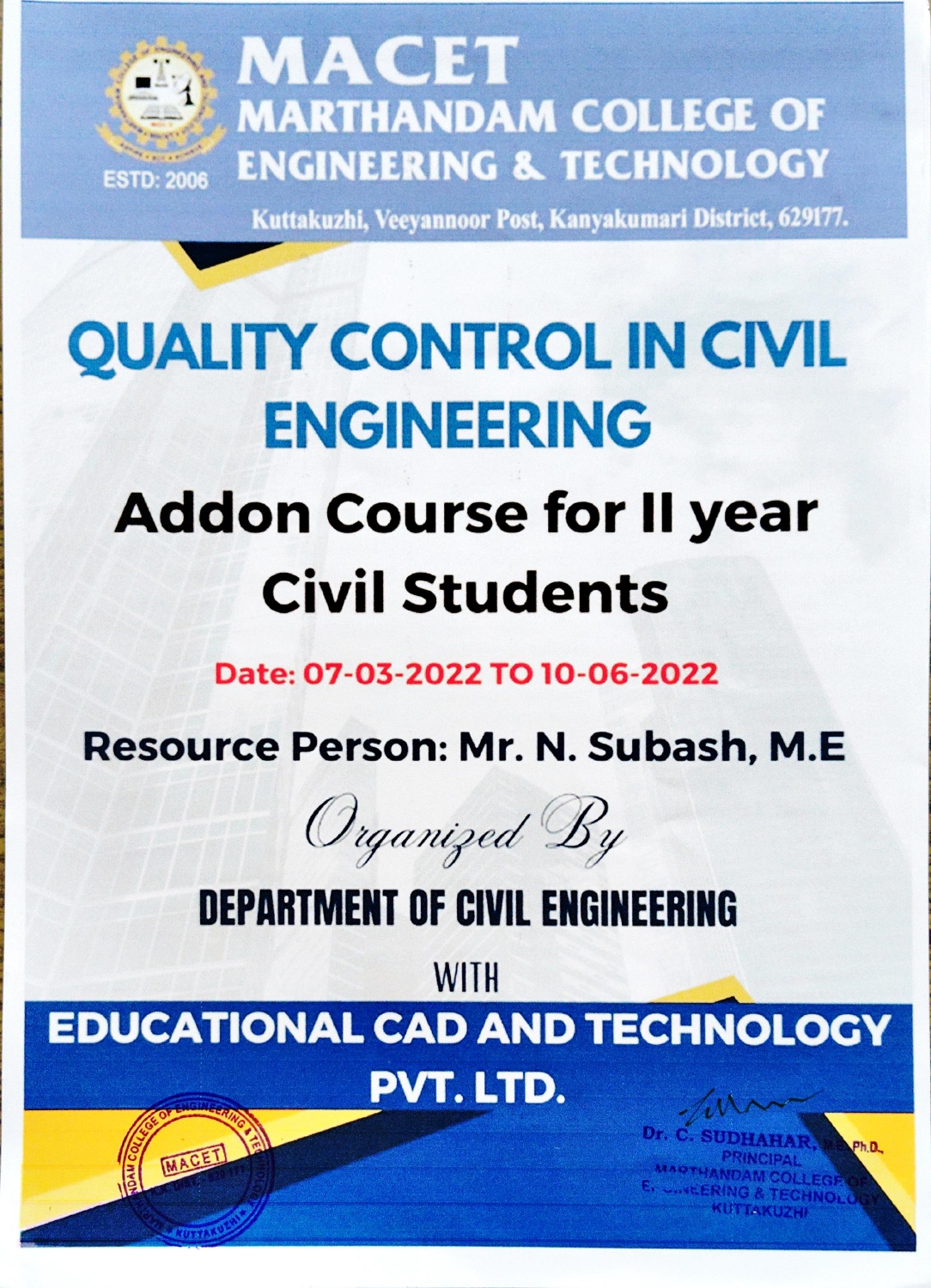 Course Code & Course Name : ACE06 Qulaity Control in Civil Engineering